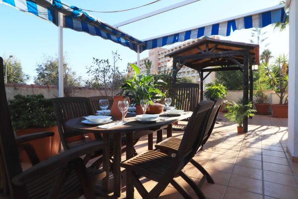 La terraza es el verdadero punto destacado de esta propiedad. ORIientación sureste . Su amplitud te brinda la oportunidad de crear dos o tres zonas diferenciadas a tu gusto, y para tu disfrute , incluye una hermosa pérgola de madera finlandesa hecha a mano, traída exclusivamente desde Finlandia.
