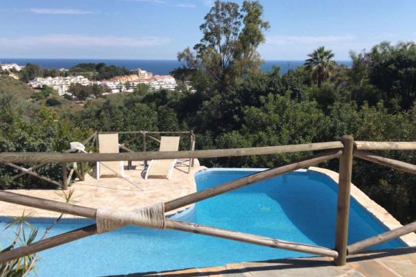 Se alquila desde Marzo 2026 a Diciembre 2026 bonita villa independiente con vistas al mar muy privada cerca de Benalmadena Pueblo .