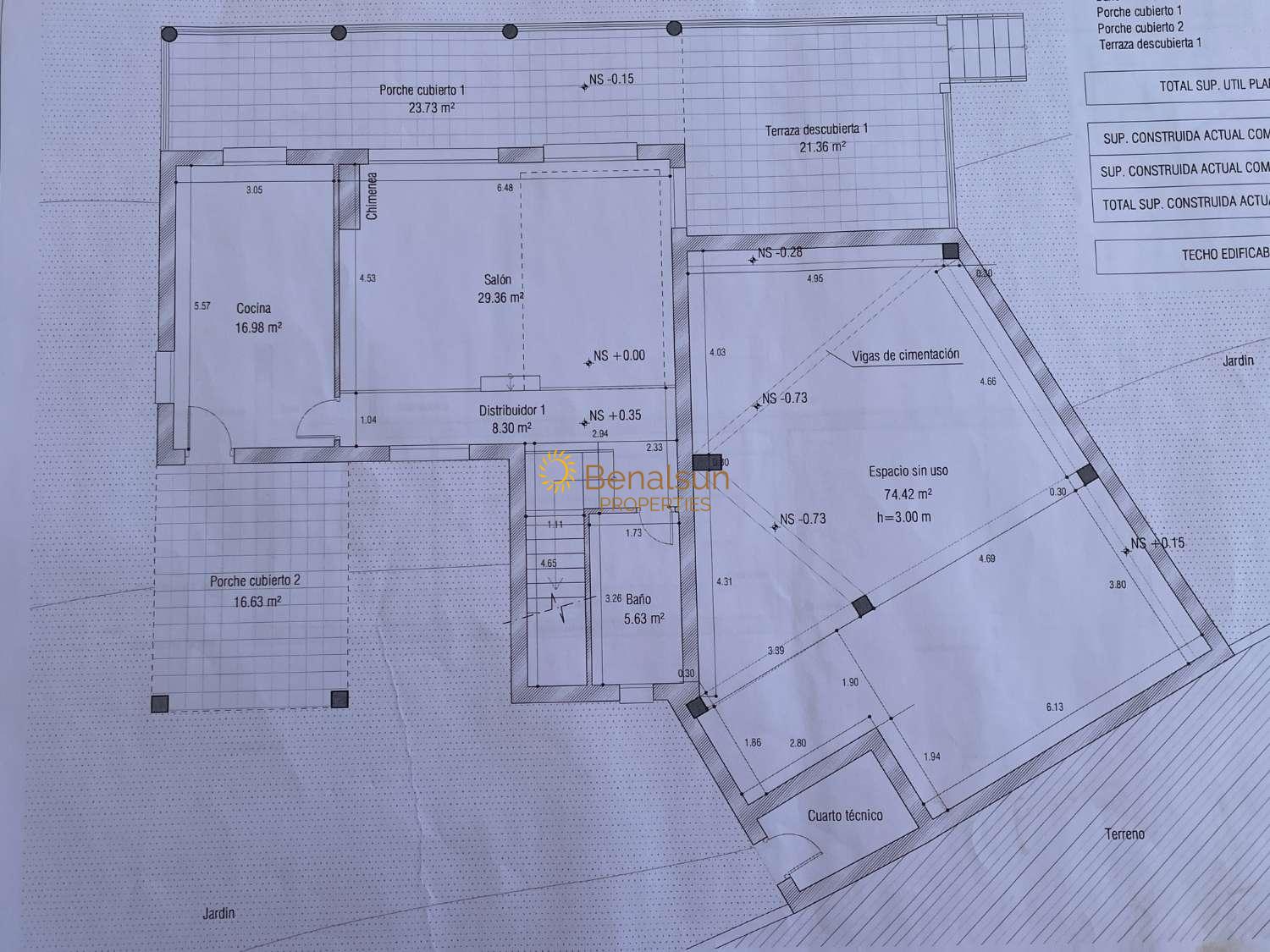 PLANTA BAJA: AMPLIA COCINA -COMEDOR CON MOBILIARIO DE ALTA CALIDAD SCHMIDT Y UNA ISLA CON CAPACIDAD PARA 5 PERSONAS ,ACOGEDOR SALON CON CHIMENEA + 2 DORMITORIOS + 1 BAÑO , TODO CON ACCCESO DIRECTO AL JARDIN . ESTA PLANTA FUE RENOVADA EN 2021 TAMBIEN DISPONE DE UN GRAN PROCHE FRONTAL VON VISTAS AL JARDIN Y UNA PARTE TRASERA CON UN SEGUNDO PORCHE Y ZONA DE JUEGO INFANTIL. TRASTERO DE 30M2 LISTO PARA SER CONVERTIDO EN NA DORMITORIO ADICIONAL CON BAÑO YA QE CUENTA CON LA PREINSTALACION DE FONTANERIA . ESTA PLANTA TAMBIEN DISPONE DE AIRE ACONDICIONADO FRIO/CALOR CENTRALIZADO