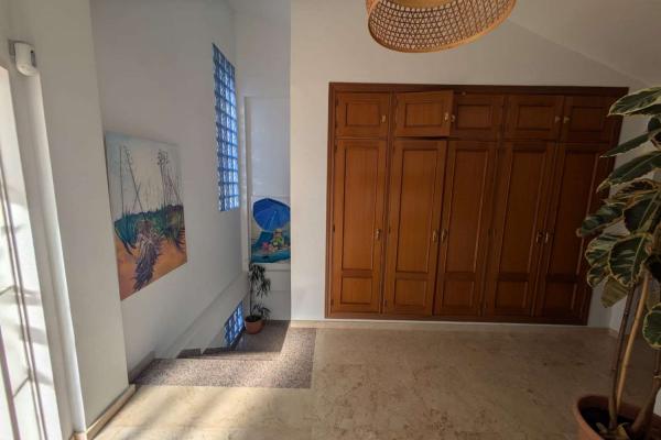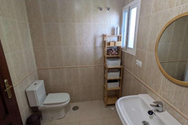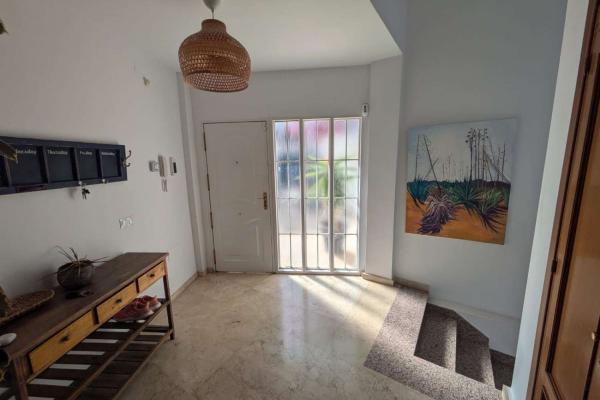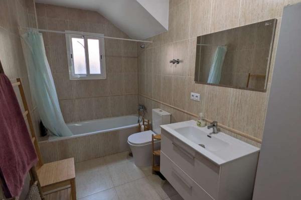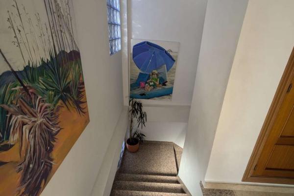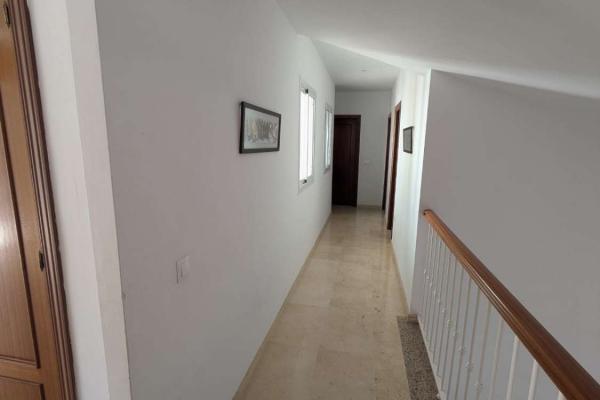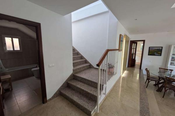 PLANTA SUPERIOR : LA ENTRADA A LA VILLA SE ENCUENTRA EN LA PLANTA SUPERIOR , DONDE UN AREA EXTERIOR AMPLIA FUNCIONA COMO PORCHE PARA ZONA DE ESTAR O COMO APARCAMIENTO PRIVADO . EN EL INTERIOR NOS ENCONTRAMOS UN RECIBIDOR ESPACIOSO Y ACOGDOR CON ARMARIO DE 4 PUERTAS , EN ESTA PLANTA TENEMOS 3 DORMITOROS Y 2 BAÑOS , DORMITORIO PRINCIPAL CON BAÑO EN SUITE Y TERRAZA CON IMPRESIONANTES VISTAS AL MAR . LA PLANTA SUPERIOR TAMBIEN CUENTA CON UN AMPLIO GARAJE CON CAPACIDAD PARA UN COCHE , ESPACIO ADICIONAL PARA BICICLETAS , EQUIPO DEPORTIVO Y TRASTERO, INCLUYE UN CUARTO DE LAVANDERIA CON SECADORA Y LAVADORA Y ESTANTERIAS.
