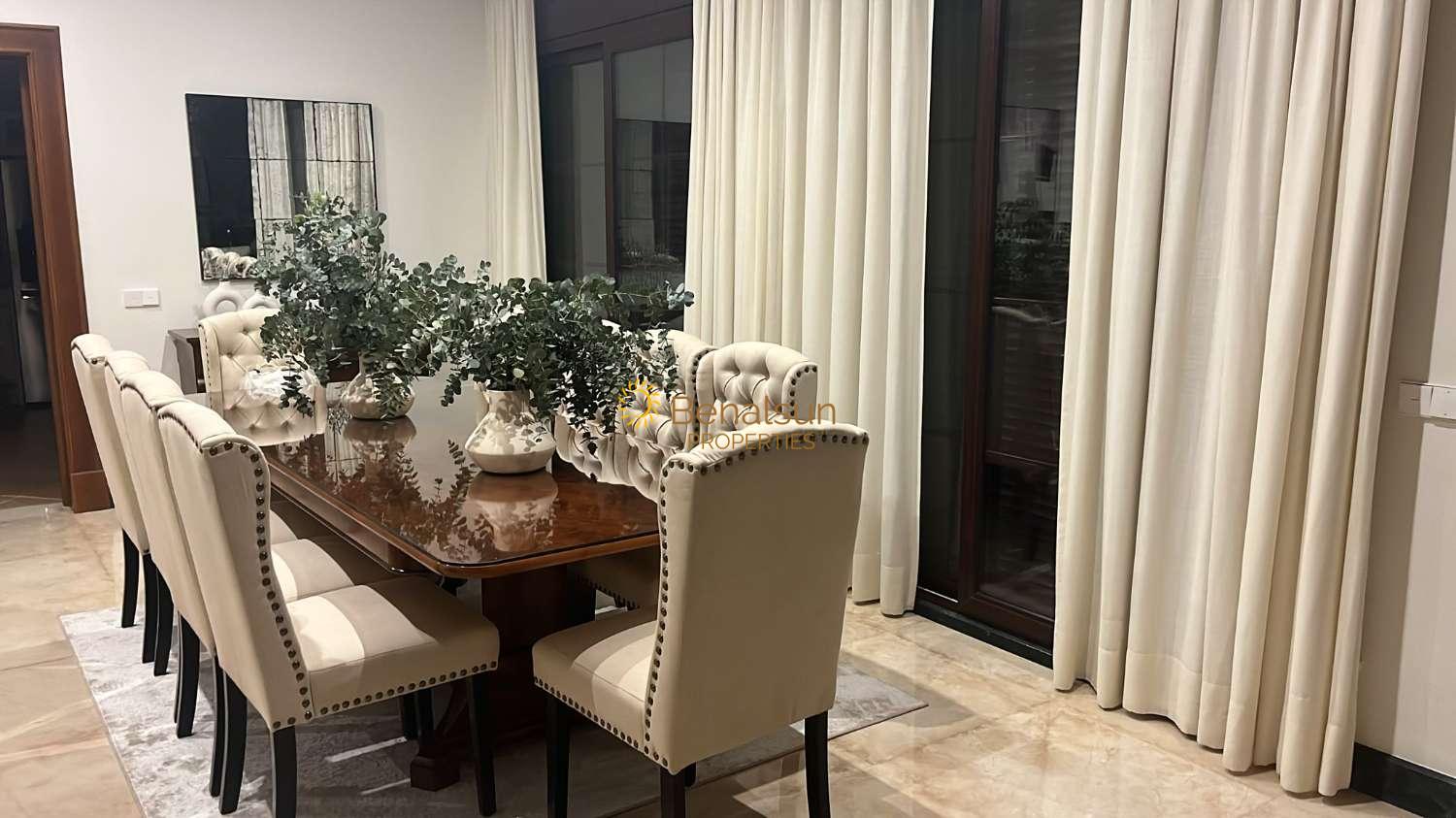 • Gran Porche.- En la parte frontal con pérgola macica de madera de iroco, donde hay una gran barbacoa y una piscina de 9 x 5 metros.