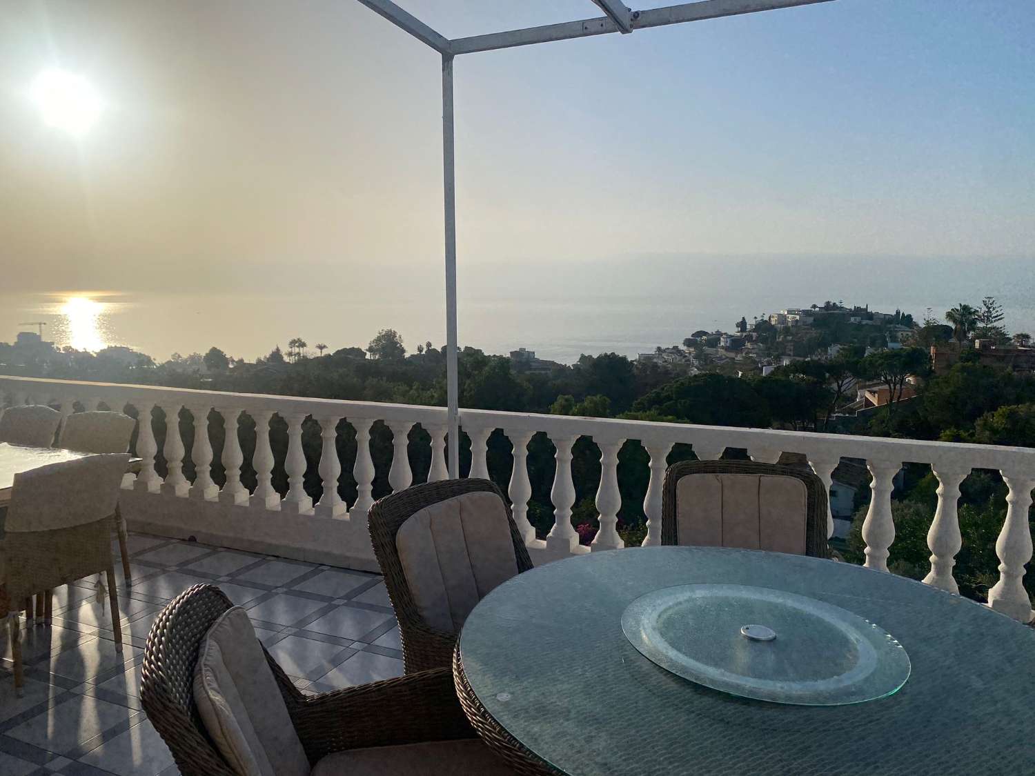 La vivienda de estilo andaluz con alto standard arquitectónico se distribuye en 3 plantas con espacio y ambientes diferentes , vistas al mar desde prácticamente todas las estancias .