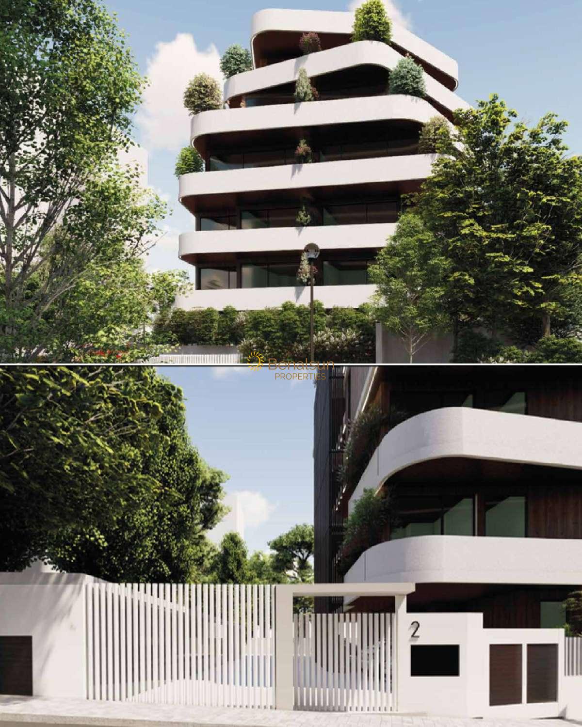 Bygningen, med moderne arkitektur, passer perfekt inn i miljøet og er designet med livskvalitet i tankene: elegante linjer, store vinduer, utmerket orientering og finish av topp kvalitet.