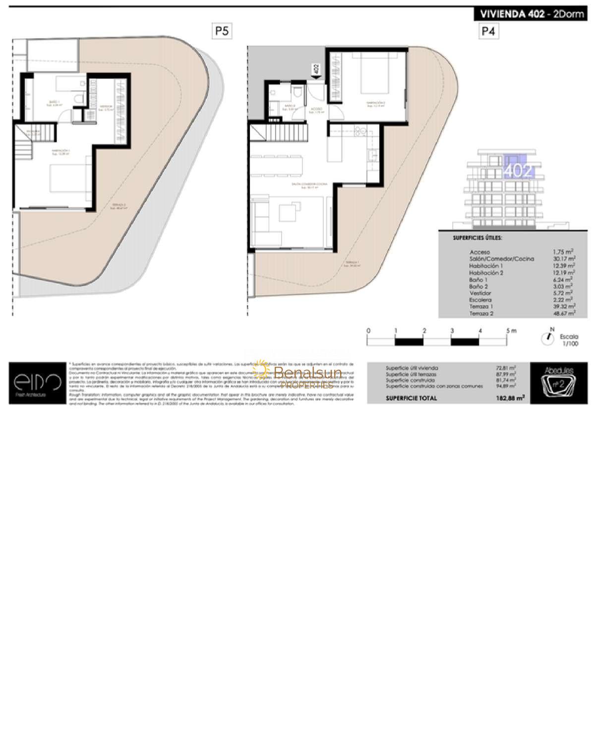 Hvert hjem er designet med spesiell oppmerksomhet på naturlig lys, utsikt og interiørkomfort. Utbyggingen skiller seg også ut for sitt felles svømmebasseng, ideelt for å nyte middelhavsklimaet hele året.