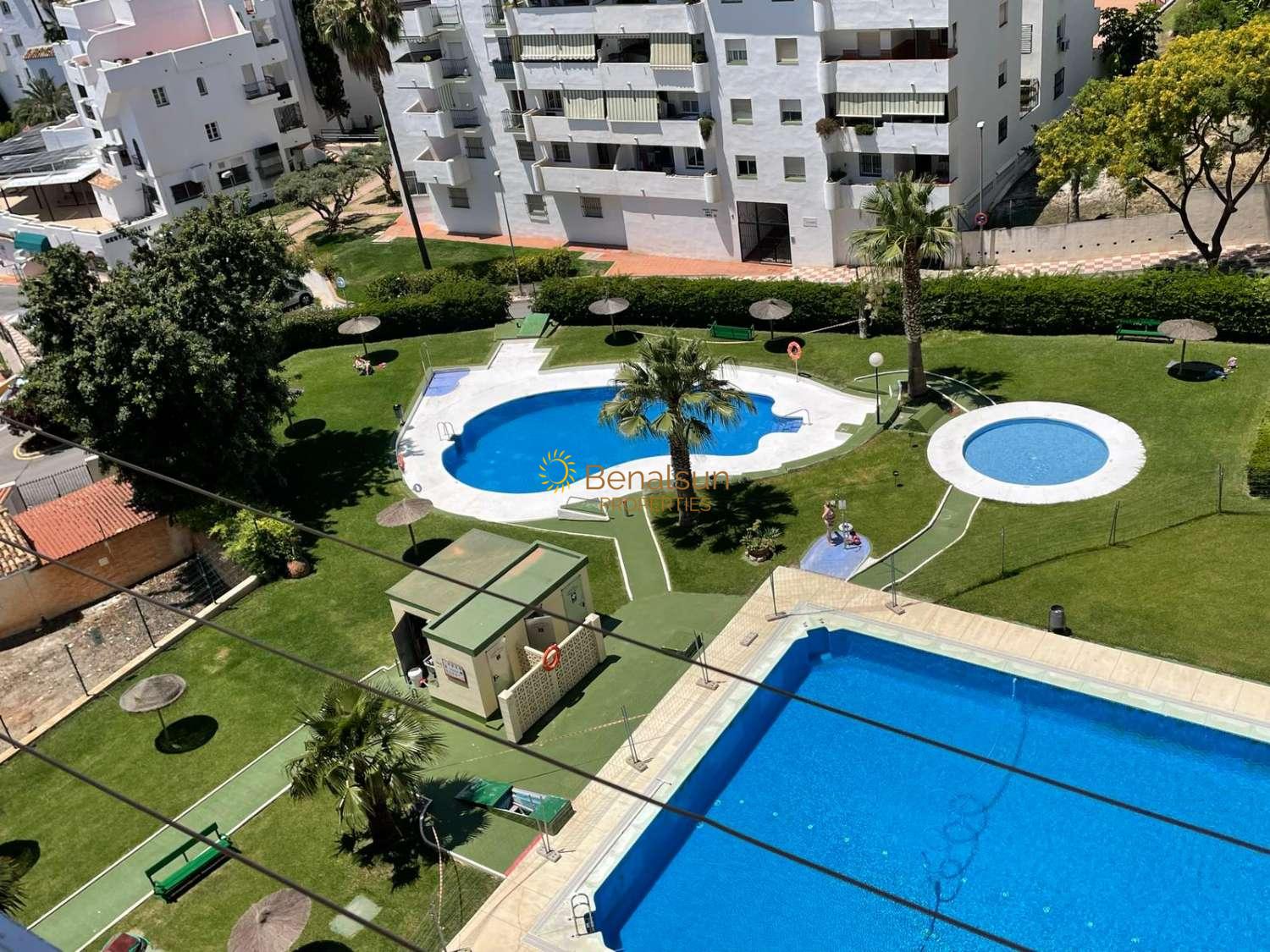 TIL LEIE FRA 1/10/2023 TIL 30/06/2024 FIN 1 ROMS LEILIGHET 40 METER FRA STRANDEN I BENALMÁDENA. LIGGER I EN PRIVAT URBANISERING MED STOR HAGE OG BASSENG OG BARNEOMRÅDE HAR RESTAURANT OG SUPERMARKED I SAMME SETT. NÆR BUTIKKER, SUPERMARKEDER, PROMENADE, APOTEK ETC. HUSET LIGGER I 1. ETASJE OG BESTÅR AV STUE, 1 BAD, 1 SOVEROM OG KJØKKEN OG TERRASSE MED UTSIKT OVER BASSENGPRISEN 570 / MÅNEDSFORESPØRSEL 1 MÅNEDS INNSKUDD. BEVIS ØKONOMISK SOLVENS. LITE KJÆLEDYR TILLATT. DET KAN LEIES I FÆRRE MÅNEDER.